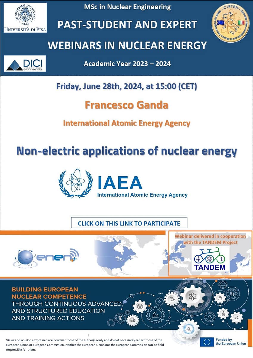 Webinar by Christophe Demazière from Chalmers University, Sweden: “GRE@T-PIONEeR: providing advanced education in computational and experimental reactor physics and safety”