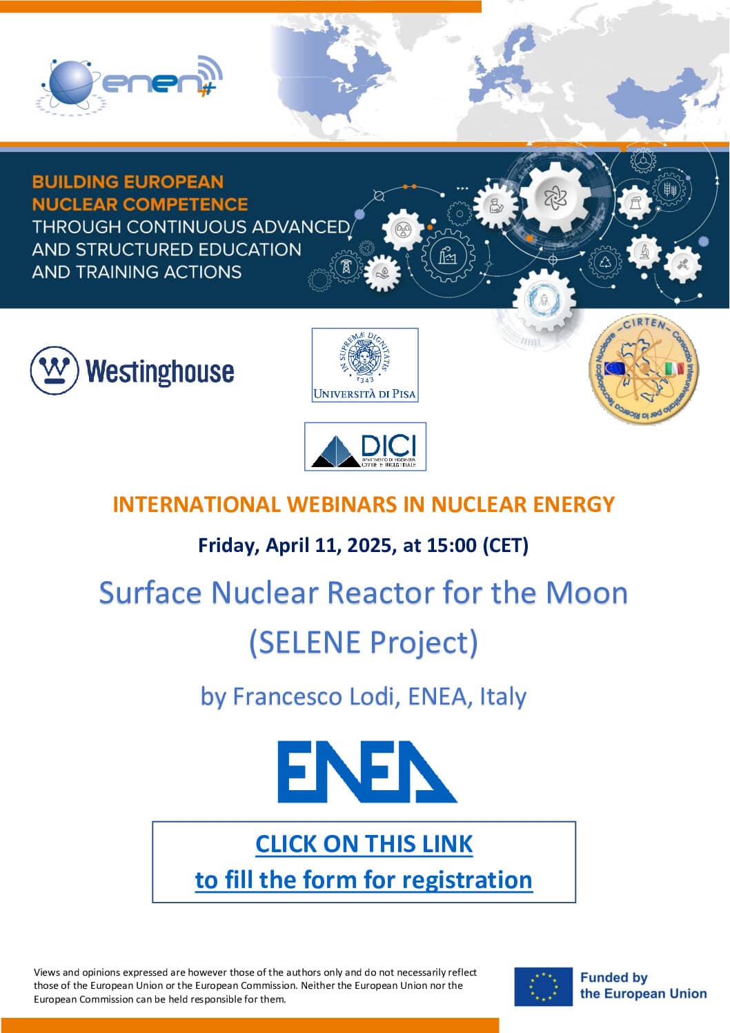 Webinar by Francesco Lodi from ENEA (Italy): “Surface Nuclear Reactor for the Moon (SELENE Project)”