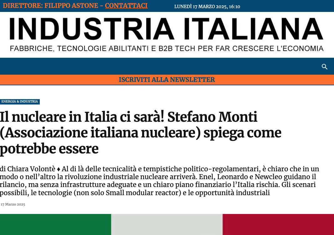 Il nucleare in Italia ci sarà! Stefano Monti intervistato da Chiara Volontè per Industria Italiana.