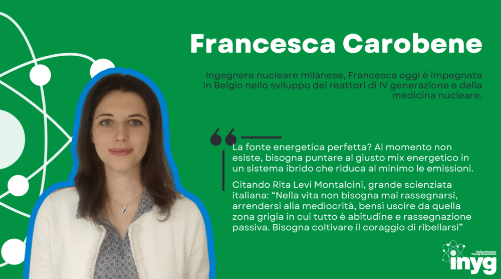 Francesca Carobene: nuclear engineer from Milan, Francesca is now working in Belgium on IV generation reactors designs and nuclear medicine.