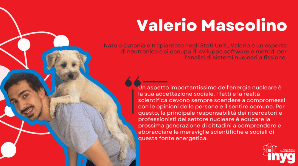 Valerio Mascolino: born in Catania and relocated in the USA, Valerio is a neutronic expert and he develops software and analysis methods for nuclear fission systems.