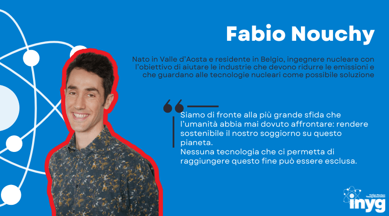 Fabio Nouchy: born in Valle D’Aosta and currently living in Belgium, nuclear engineer aiming at helping industries that should reduce emissions and are looking at nuclear technologies for solutions.