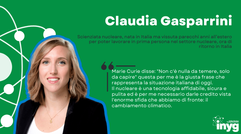 Claudia Gasparrini is a nuclear scientist: born in Italy but she lived abroad for many years to work in the nuclear sector, she is now back in Italy
