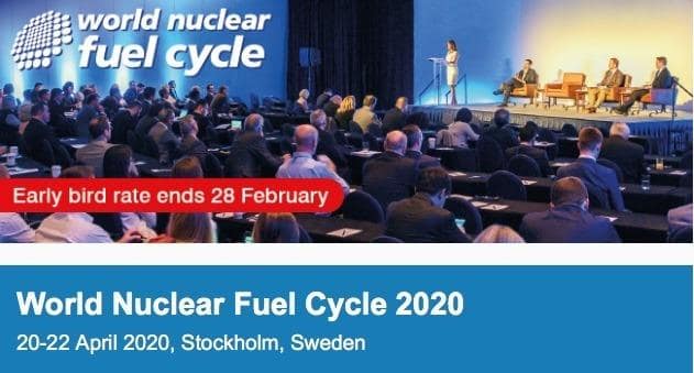 Nuclear Energy Institute e World Nuclear Association organizzano il World Nuclear Fuel Cycle 2020 dal 20 al 22 Aprile a Stoccolma. Early bird registration entro il 28 febbraio. Per maggiori informazioni visitare la pagina ufficiale.